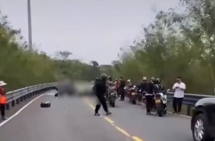 看车祸现场曝光的视频就基本能想象这场事故的惨烈,倒地的双方车主都已经血肉模糊,血迹斑斑的路面,以及散得七零八落的摩托车。
