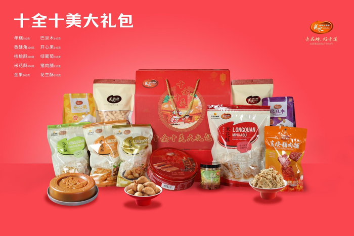 为迎接2024年春节,龙泉精心设计了十全十美礼盒、全家福礼盒、什锦幸福礼盒、阖家欢、过年三宝礼盒、鸿运礼盒、香酥礼盒、新春快乐大礼包和海鲜大礼包等多款礼盒产品,既上得厅堂,又下得厨房,满足消费者走亲访友的不同需求。