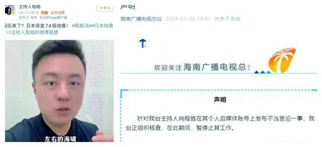 地震次日,海南卫视主持人肖程皓在抖音说这是“报应来了?”,抖音用户为此点赞数万,随后,海南广播电视总台宣布这是“在个人自媒体账号上发布不当言论”,将肖程皓停职。