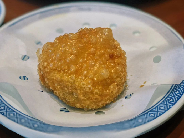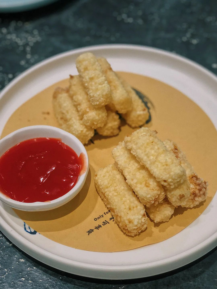 将黄米颗粒裹在炸鲜奶上,比面包糠和玉米淀粉做的外皮,有更香酥和嘎嘣脆的好滋味,蘸上番茄酱吃,隔壁小孩能直接馋哭。