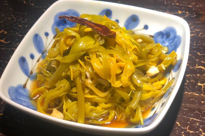 莜面做的块垒,加上当地特色的胡麻油或葱油炒熟,和蒸熟的土豆小块儿一起,碳水大爆炸,就是一道充满塞外风味的早餐。作为外地人第一次吃并不习惯,觉得主食混主食,没有什么特别的味道。不过据说,如果觉得滋味稍显寡淡,需要搭配上大同人自家腌的烂腌菜,就会变得超级香。