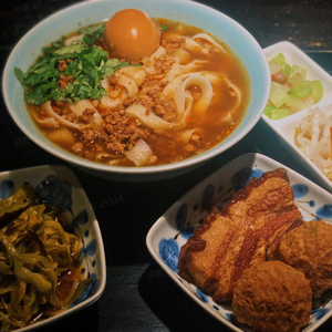 大同刀削面外层软滑,内里筋道,被大骨汤和多种调味品和熬成的卤汁汤底浸润,咸香适口。吃面的标配是由圆白菜腌制的一小份烂咸菜,再加上卤蛋、豆腐干和肉丸子,甚至再来一份扒肉条,奢华感倍增。一碗热乎乎的刀削面下肚,感到筋骨舒畅,人生快意,寒风刺骨的天气也不那么面目可憎了。
