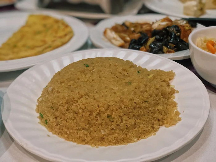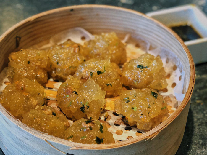 “黄米凉糕”是西贝莜面村的招牌菜之一,在大同吃到的版本,更是曾经沧海。家常菜馆的黄米凉糕,层次分明:下层是洁白莹润的糯米,上层是金黄灿烂的黄米,中间还夹了一点儿葡萄干丰富味觉体验,糯糯叽叽,十分弹牙,再淋上一勺浅黄晶莹的桂花酱,口感冰凉清甜,幽香沁人心脾,是一口迷人的秋天味道。