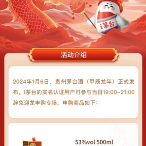 6日晚19时—21时,i茅台举行“玉兔辞旧·龙腾九霄”辞兔迎龙专场活动。平台投放了甲辰龙年贵州茅台酒和癸卯兔年贵州茅台酒各9999瓶,i茅台实名认证用户可进入活动页面进行申购。活动结束后,癸卯兔年贵州茅台酒(简称“兔茅”)从i茅台下架,“龙茅”正式上架。