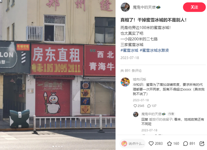 “干掉蜜雪冰城的,是旁边的蜜雪冰城”