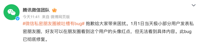 抱歉给大家带来困扰。1月1日当天极小部分用户发表私密朋友圈,好友可以在朋友圈看到这个用户的头像红点,但无法看到具体内容。此bug已彻底修复。