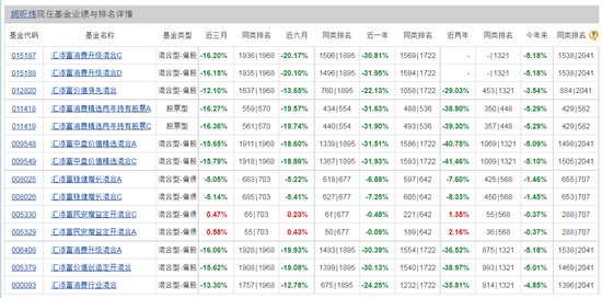 以基金经理吴振翔为例,这是一位累计任职时间超过13年的老将,他在管的基金已近15只,但从天天基金网的数据看,这些产品全都在亏损,真的是一片绿。