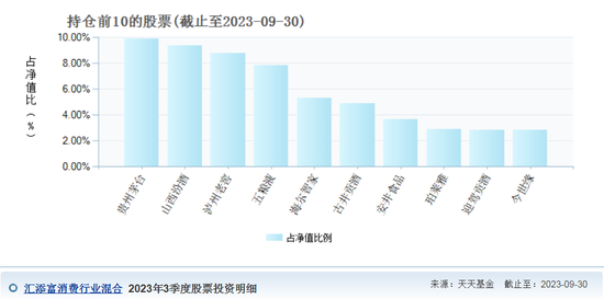 拉出汇添富消费行业混合的前十大持仓来看,白酒企业占据了70%,这只基金简直就是一个“大酒庄”。