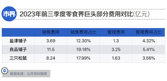 2022年,盐津铺子销售费用较上年同期下降了9.51%,为4.57亿元,公司表示主要是因为调整营销战略,减少商超渠道投入,导致销售费用减少。加上友商们线上渠道流量费、坑位费等影响,到今年前三季度,盐津铺子销售费用率下降至12.3%,远低于竞品。