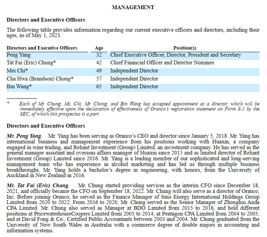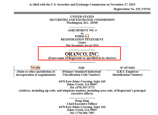 2023年11月27日山西省汾阳市华鑫酒业发展有限公司的实质控股公司ORANCO, INC.(以下简称“华鑫酒业”)在美国证监会(SEC)公开披露招股书,股票代码 ORNC,拟转板美国纳斯达克IPO上市