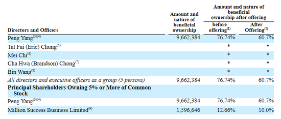 Tat Fai (Eric) Chung、Mei Chi、Cha Hwa (Brandson) Chong、Bin Wang的持股均不超过1%。