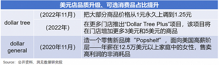 反观Dollar店,也曾想方设法满足消费者的低价需求,如与供应商协调共同分担财务负担等,但终究还是走向了涨价与品质升级。