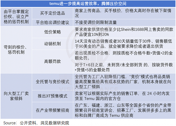 还可以进一步提高运营效率,腾挪压价空间,例如直接由买手选品核价,或者对价格、质量、时效不达要求的商家进行限流、高额罚款等惩罚。