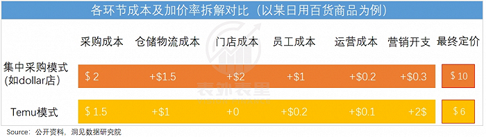 也就是说,Temu的模式属性对标的是Dollar店,与亚马逊并未正面交锋。