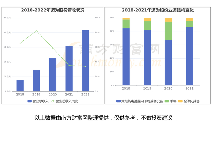 迈为股份创始于2010年9月8日,2018年11月9日在深圳证券交易所上市,股票代码300751。公司主营业务为主要从事智能制造装备的设计、研发、生产与销售。