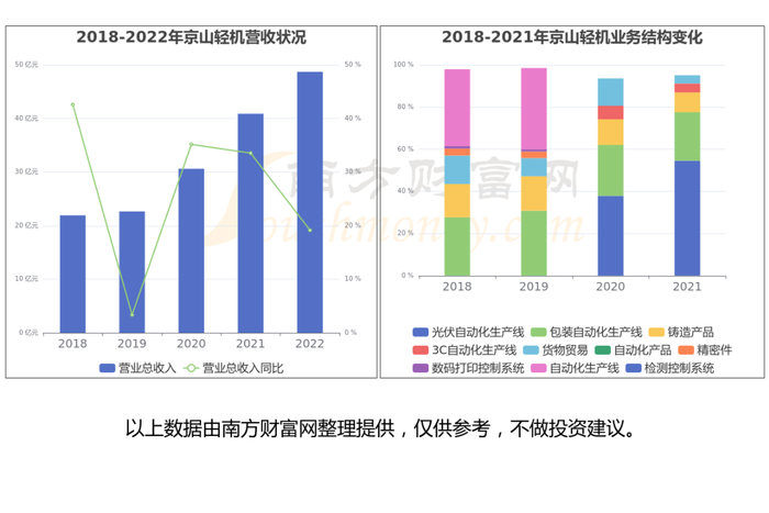 京山轻机创始于1993年3月30日,1998年6月26日在深圳证券交易所上市,股票代码000821。公司主营业务为主要从事高端智能成套装备的研发、设计、制造、销售与服务。
