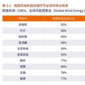 我国风电机组关键环节全球市场占有率。资料来源:我国碳中和目标下的风光技术展望