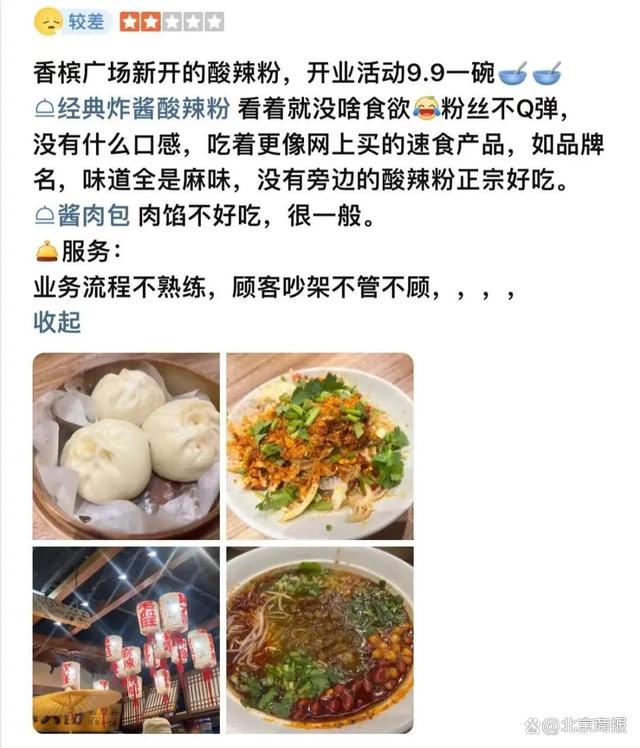 虽然刚试营业不久,由于麻六记酸辣粉自带流量,已经出现排队小高峰。有网友在大众点评留言称,午餐高峰时间需要排队。口味评价上则出现了两极分化,有人称“性价比高,味道正宗”,但也有不少消费者体验后表示“不如盒装的好吃”“太酸、粉太硬”等。
