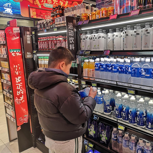 超市货架上的电解质饮料。孟刚摄
