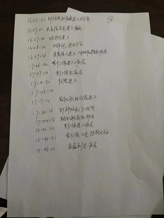“12月22日下午2时55分我父亲突感身体不适,陪护人按响床铃,数分钟内没有医生、护士回应,陪护人于是去找护士、医生,大约延迟了10分钟,医生来到病房后,未及时进行抢救,陪护人数次提醒病人呼吸困难需要吸氧,而病房没有呼吸机氧气设备,医生让护士出去拿氧气设备未见回应,医生离开病房后又空手返回病房,家属无奈亲自去找氧气设备。在抢救过程中,呼吸机、彩超机设备直到下午4时左右才进病房,下午4时30分左右,医生出来告知陪护人抢救希望渺茫,虽然医院实施抢救至晚上6时。”成女士说。
