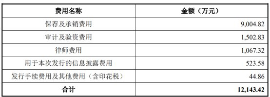 鼎龙科技公开发行新股的发行费用(不含增值税)合计为12,143.42万元,其中保荐及承销费用9,004.82万元。