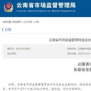 云南省市场监督管理局食品安全监督抽检信息通告 2024年第1期