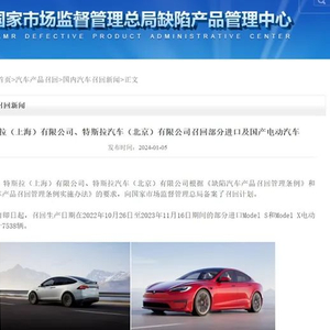 中国经济网1月8日讯(记者 郭跃)日前,国家市场监督管理总局发布3起乘用车召回公告,包括特斯拉、本田、讴歌、理念、道奇5品牌在内的共计2291506辆乘用车将被召回。其中,特斯拉召回1617643辆,占比70.59%;本田系召回672720辆,占比29.36%。