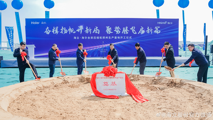2023年4月8日,郑州海立电器有限公司制造基地也就是海尔、海立压缩机项目奠基仪式在郑州经开区举行,值得一提的是,这是海尔集团近年来首个在青岛以外投资的压缩机项目。公开的资料显示,该制造基地整体规划年产空调压缩机1500万台,其中一期产能为600万台,预计2024年上半年投产。