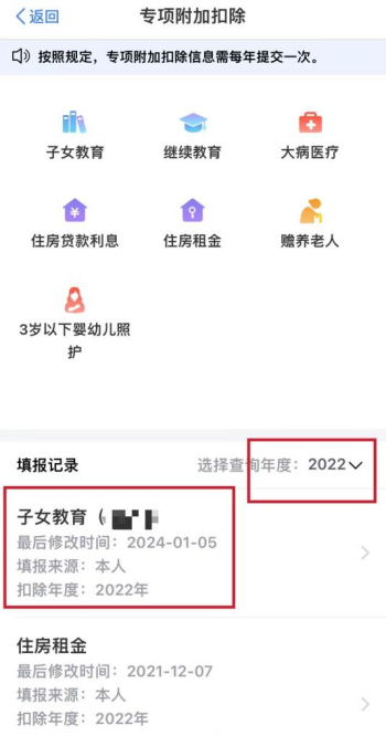 选择对应的年度,并点击填报记录中的“子女教育”。