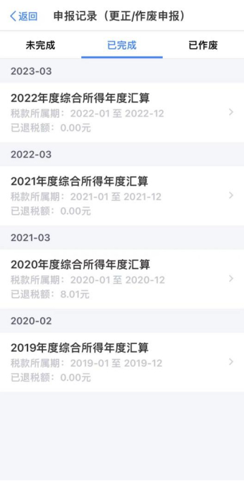 进入“申报查询(更正/作废申报)”界面,点击选择对应年度。