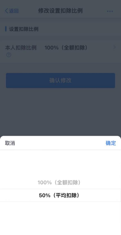 若您需要修改设置扣除比例,选择正确的扣除比例后,点击“确认修改”。