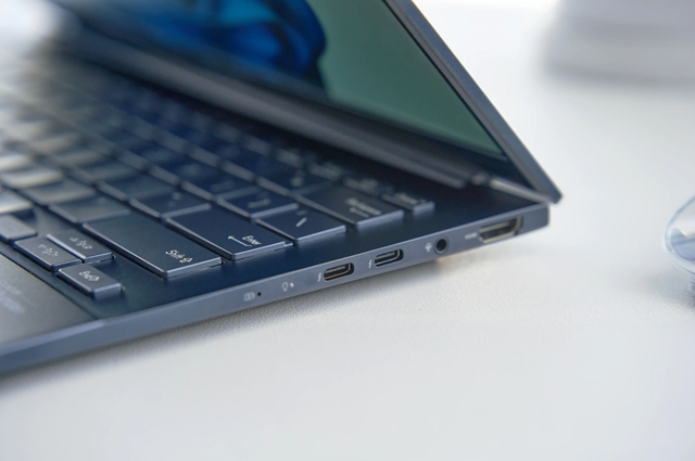 为了满足移动办公需求,灵耀14还拥有双雷电4、HDMI 2.1 TMDS、USB-A 3.2、3.5mm耳机孔等丰富接口。搭载75Wh大容量电池,至高可达18小时,并支持PD快速充电,搭配快充充电器只需39分钟即可快充50%的电量,并支持5-20V电压供电,充电宝也可为它充电。