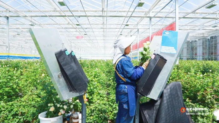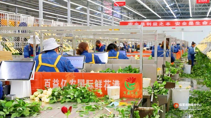 据了解,临夏百益亿农国际鲜花港从2022年10月投产运营以来,其设施装备水平、科技应用能力均达到国际一流、国内领先水平,使玫瑰品质达到了前所未有的高度,目前,发展业态成熟,经济效益显著,市场前景广阔,年产玫瑰鲜切花约6000万支,产品主要销往以北、上、广为主的国内一线城市,也成功出口至俄罗斯、哈萨克斯坦,鲜花市场持续走俏。同时,在花卉生产、包装、物流、零售等环节带动500多人就业,花卉产业已真正成为带动临夏市经济发展的支柱产业、富民产业。