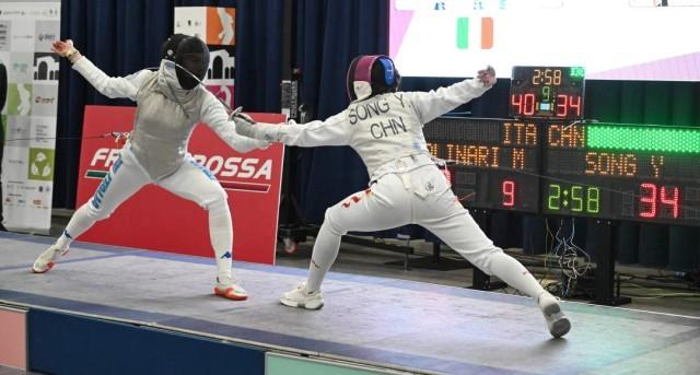 女子花剑团体共19支队伍参赛。由庄昕怡、宋玥、焦恩祺、徐梓怡组成的中国队同样表现不俗,首轮轮空后,16表对阵英国队便以45-18的大比分优势取得胜利,四分之一决赛又以45-38战胜波兰队。半决赛,中国女花小将们势头正盛,最终以45-37的比分晋级决赛。决赛中,中国队面对的同样是东道主意大利队。比分一度十分胶着,至第八局结束,中国队以34-40落后对手。最后一局宋玥登场,她顶住了巨大的压力,积极进攻,在技术和气势上压制对手,单局打出了11-4的漂亮比分,以45-44逆转取胜,勇夺桂冠。