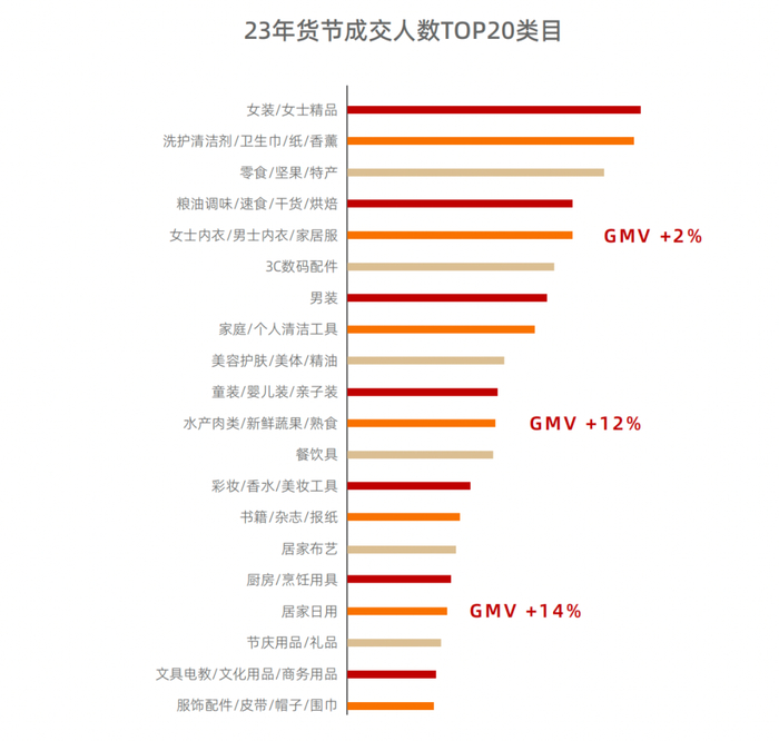 进入更成熟阶段的年轻人,开始重视家庭氛围,提升新年仪式感的家居饰品、布艺等类目展现出高增速。家家户户张罗一顿年夜饭,带动水产肉类、新鲜蔬果、熟食、调味品、厨房用品等品类旺盛的消费需求。与此同时,越来越多年轻人也开始“减负”,将烹饪方便、选择多元的预制菜和半成品摆上饭桌。