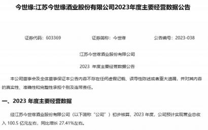 今世缘率先发布2023年主要经营数据