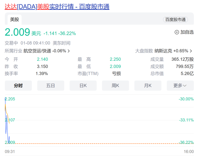 与此同时,在美股上市的达达集团(Nasdaq:DADA)也发布公告称,公司在自查过程中发现广告收入数据存疑,将委托第三方重新审计。受此影响,1月8日,达达集团美股开盘大跌,截至发稿,跌超36%。