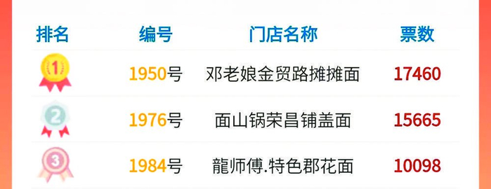 投票只剩2天 网友喜爱的小面竞争激烈 阿依娘镇店豌杂面夺回第一名宝座