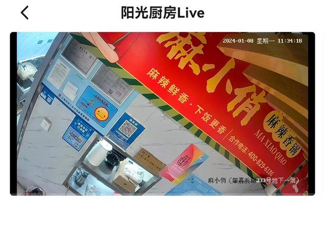 第四类则属于“直播了个寂寞”。小阿婆本帮菜(延安西路店)的直播画面大部分被外卖取餐口上方的品牌宣传板遮挡,下方的取餐口只露出右上角。麻小俏麻辣香锅(徐汇店)的直播画面是倾斜的,外卖取餐口的右下角及周边区域看不见。海金滋(长寿路店)的监控镜头对着无效空间,整个画面蒙上了一层厚重的白雾,只能看到最下方的白色灯光。