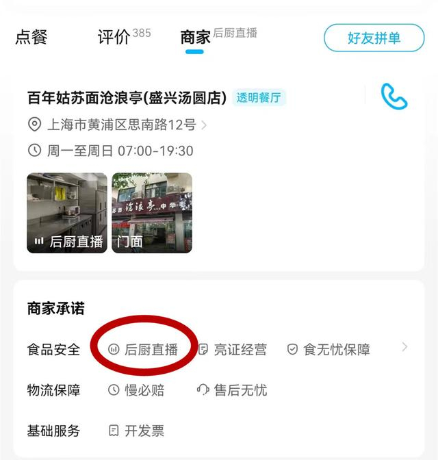 如果按照正常点餐流程,要在所选商户的“商家”一栏找到“明厨亮灶”标识,则基本靠运气。每家商户是否具有“互联网+明厨亮灶”功能,不会直接显示在首页上。