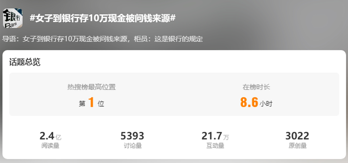 据悉,江西一女子在某社交平台上发文称,10万现金去银行办个定期,没想到银行工作人员问她,要存多少钱?这钱是从哪里来的?