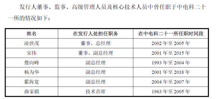 参考招股书的内容发现,赢双科技的前十名自然人股东和曾任职于中电科二十一所的名单完全重合,说明赢双科技对这六名董监高在业务、技术、人员上存在一定依赖。