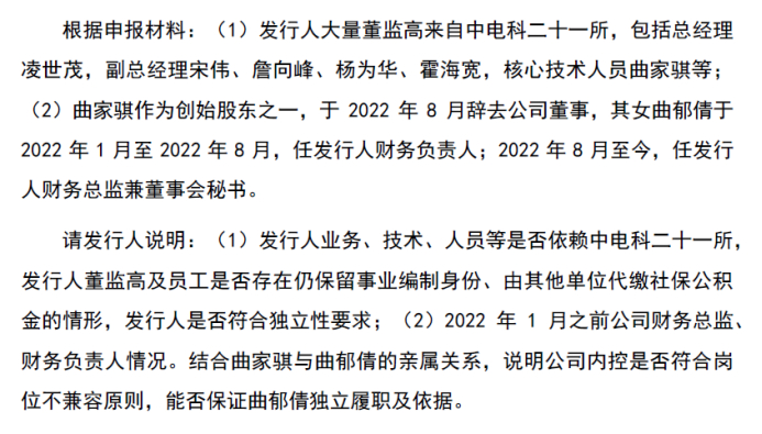 而赢双科技存在大量董监高曾任职过中电科二十一所的经历,并遭到监管部门的问询,涉及到依赖中科电二十一所的可能性。
