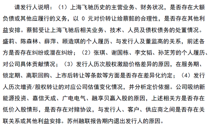 不仅如此,蔡懿还曾经低价转让股权,为了感谢孙芝芳2013年向公司介绍了投资人苏州融联,2015年蔡懿以10元/注册资本的价格向其转让了上海飞驰1%的股权(对应注册资本1万元)。