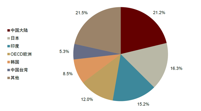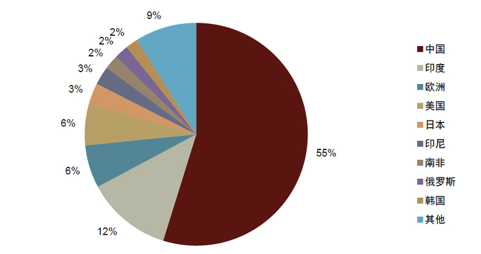 图表2:印度煤炭消费量占全球的比重约为12%