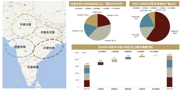 ► 往前看,我们认为供需地域错配的局面短期可能仍难改变。由于地区发展不平衡,印度能源需求增长存在地域性。根据印度中央电力局预测,到2029-30财年,在印度电力需求增长中,西部、北部和南部地区的需求增量相对更高。因此,考虑到当地煤炭供给增量可能仍集中于东部地区,我们认为印度煤炭供需地域错配局面短期仍难改变,甚至不排除进一步错配的可能。