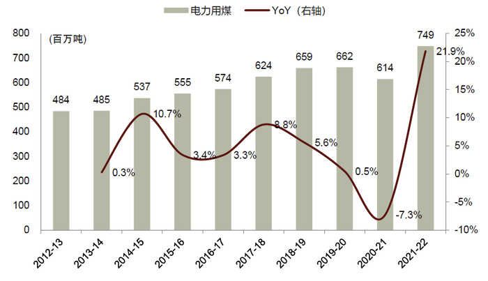 注:1)未包括褐煤;2)2022-23指印度财年(2022年4月1日至2023年3月31日)