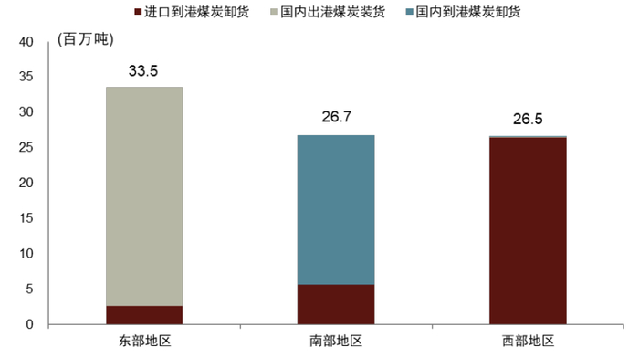 不同区域港口装卸煤炭的分化情况,也反映了供需地域错配这一特点。根据印度港口航运水路部统计,2021-22财年印度主要港口海外煤炭进口卸货量7,039万吨,主要港口国内煤炭装货量3,100万吨、卸货量2,153万吨。东部地区是印度煤炭主要供给地区,港口动力煤装货量较大。此外,该地炼焦煤到港卸货量也较大,反映出炼焦煤消费集中于该地。西部地区因煤炭资源缺乏,当地港口对海外及印度国内动力煤的卸货量大,反映该地煤炭自给能力相对有限。
