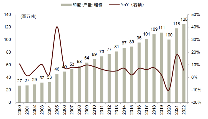 资料来源:印度钢铁部,世界钢铁协会,中金公司研究部