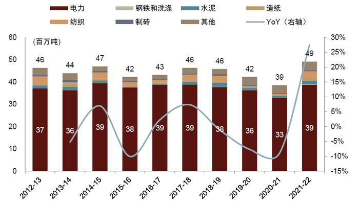 图表4:印度煤炭分行业消费量